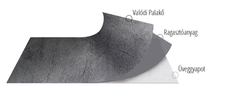 - 0,1-1,4mm vastagságú, 100%-ban természetes palakő-felület