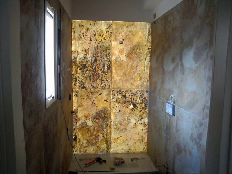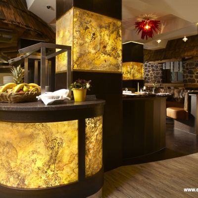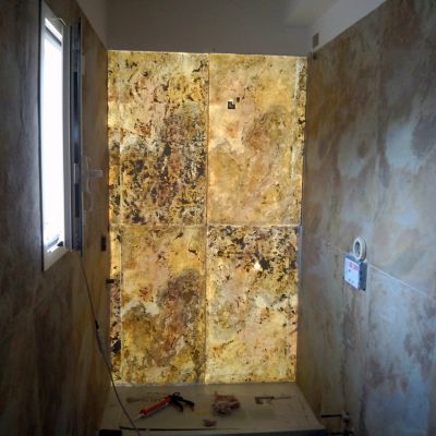 Tehát alig fél nap alatt egy kisebb felület felújításával kész vagyunk, még csak koszt se nagyon csináltunk! Végre gyönyörködhetünk palakövünk természetes szépségében… és ha bekapcsoljuk a háttér világítást? Translucent mágnesként vonzza magához a tekinteteket. A fény átragyogja a palakő teljes felületét, kirajzolva a természet által formált gyönyörű, egyedi mintákat. Mivel világít is… Bizony Translucent nemcsak design elem, hanem olyan fényforrás is, amellyel hangulatosan és egyedi módon vihetünk fényt a térbe.