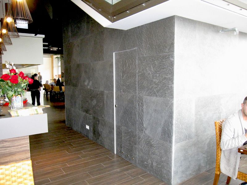 A kőfalba rejtett ajtós trükkel, tehát nemcsak nagyobbnak látszik majd a rendelkezésünkre álló tér, hanem extrém módon fel is dobjuk a helyiséget! Egy kis matekkal élve: Slate-Lite kövek= könnyű applikáció=gyönyörű dekoráció.