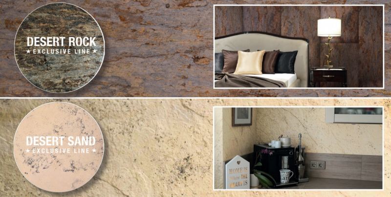 Az új színek közül egyértelműen a Desert Rock a legérdekesebb, ami alapvetően egy rozsdás barnás, nagyon erősen strukturált, rendkívül karakteres kő. A Desert Sand ezzel szemben egy jóval visszafogottabb, világos árnyalatú, fehéres-sárgás színű homogénebb szín, ami nagyon hiányzott eddig a palettánkból.