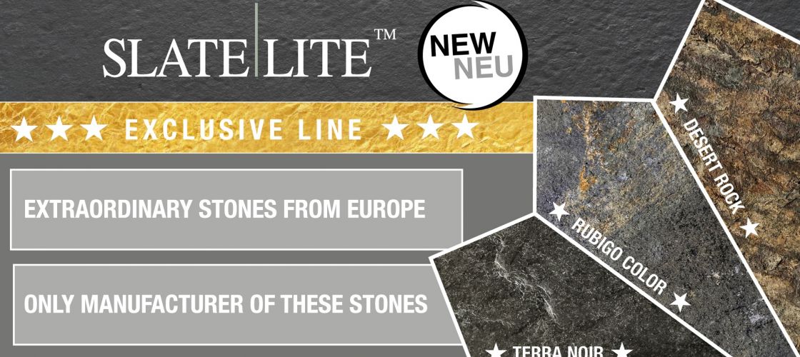 Nagy örömünkre néhány szuper újdonsággal indítjuk a 2019-es évet. A legfontosabb, hogy tovább bővült a már így is nagy ultravékony kőburkolat kínálatunk. Az Execlusive Line névre keresztelt új színcsaládunk rögtön 4 új színnel mutatkozik be. Különlegessége ezeknek az új színeknek, hogy az alapanyagul szolgáló gyönyörű palakövek nagyrészt Európából származnak, és kizárólag a Slate-Lite kínálatában találhatóak meg.